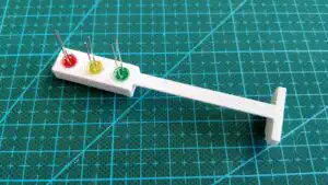 This project features 6 LED’s. The LED’s are arranged in two sets of Green/Orange/Red just like real life traffic lights. The Arduino code cycles through a sequence of Green – Orange – Red and back to Green, in such a way to ensure that only one set of lights is Green at any time. I designed some simple traffic lights in TinkerCad ensuring it could be printed without any supports. A bit of hot glue holds the LED’s in place.