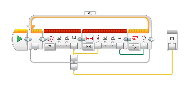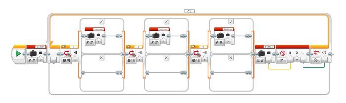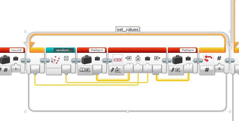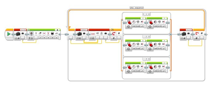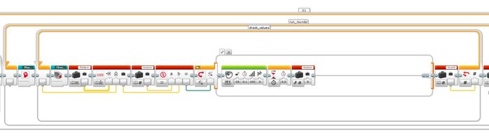 The whole program was written in the EV3-G software, and is a nice example of how to use the Array functionality.