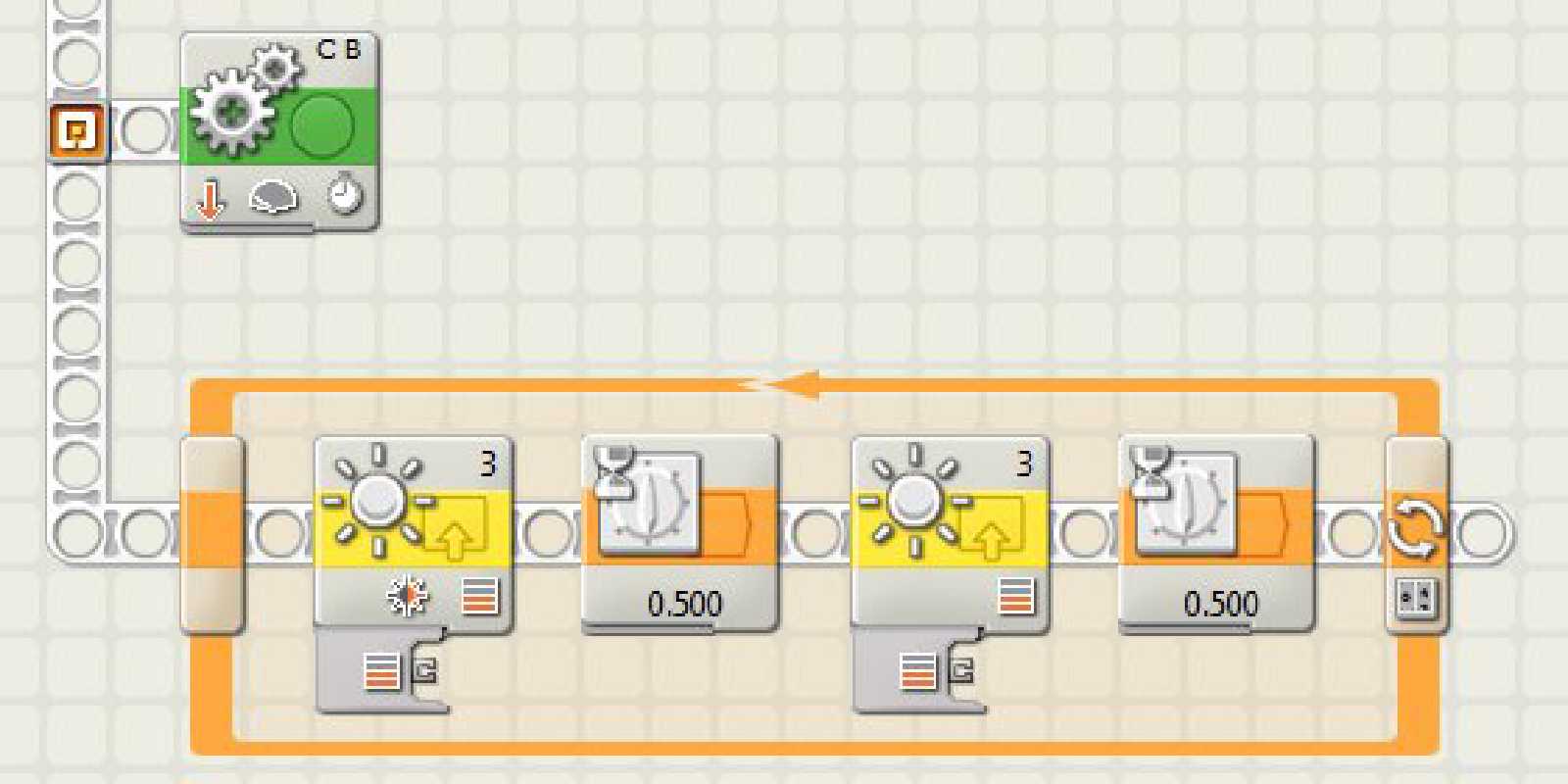 The third line uses the Light Sensor block, not to take a measurement, but to toggle the ‘Generate Light’ function that is used when using the Light Sensor in either Ambient or Reflected mode.