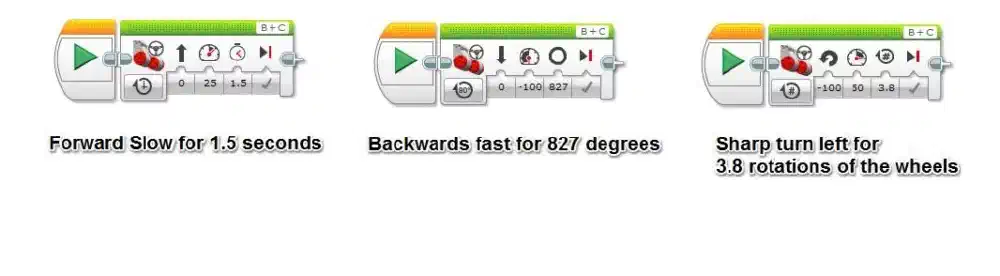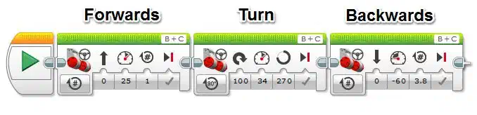 To make the robot perform multiple moves (forward, turn, backwards) we can put Programming blocks together.