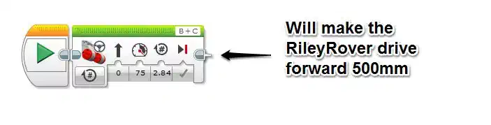 Once we know how far 1 rotation will take us, we can then do a little more Math to calculate how many degrees of the wheels we need to travel any distance we desire. Let’s revisit our earlier challenge of making the robot drive 500mm.