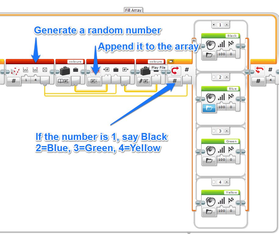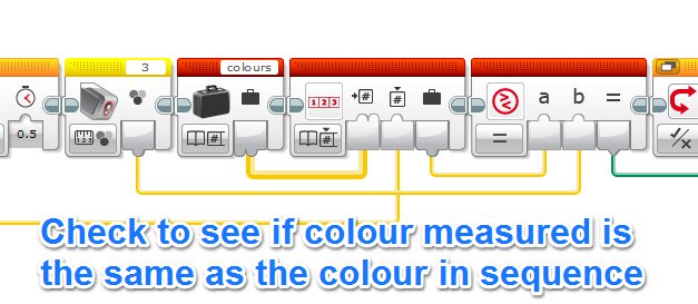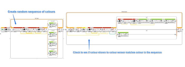 The whole project can be broken down into 2 distinct stages 1. Create and say the sequence of random colours 2. Check if the colours shown to the colour sensor match the sequence.