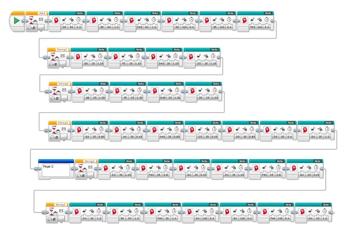 This is a screenshot of one of the programs. You can download the full project file here – carol_of_the_bells.ev3