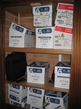 The teams themselves use A4 cardboard boxes to store their robots and bits and pieces in another cupboard (see 3).