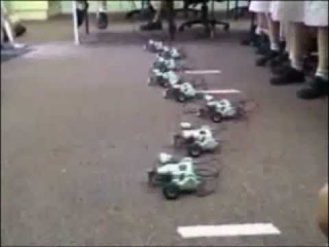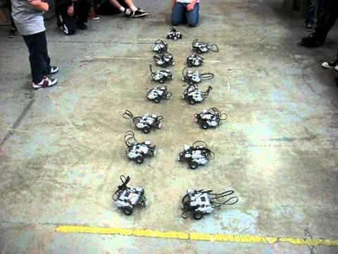 One of my (and the students) favourite activity is the Robot wave. Basically it consists of all robots driving forwards, backwards, forwards, but when done in time looks like a the human waves you see at sporting matches.